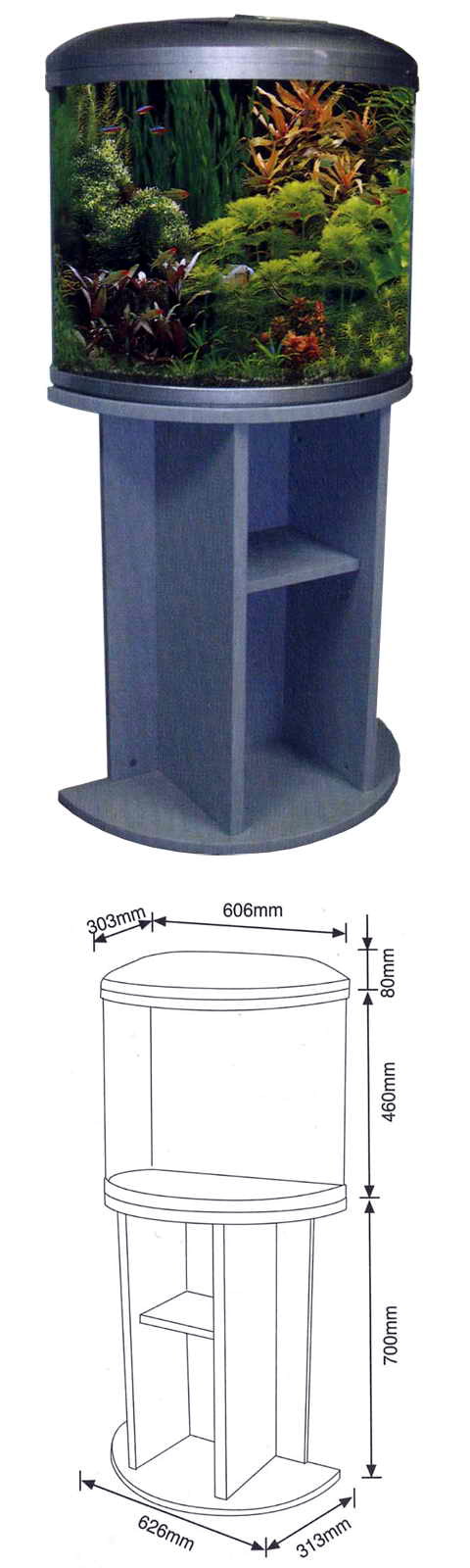 Аквариум: размер 606*303*540мм цвета: серый, серебристый, махагон, светлый дуб, белый  Тумба: размер 606*303*760мм материал ДСП. Аквариум 62л В комплекте лампы люминесцентные белые: 2x8W.